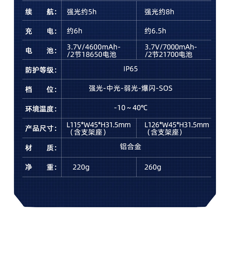 1、大尺寸铝合金光杯,光斑更圆润。 2、新型高亮远射灯珠,40W大功率,亮度高,照明效果好。