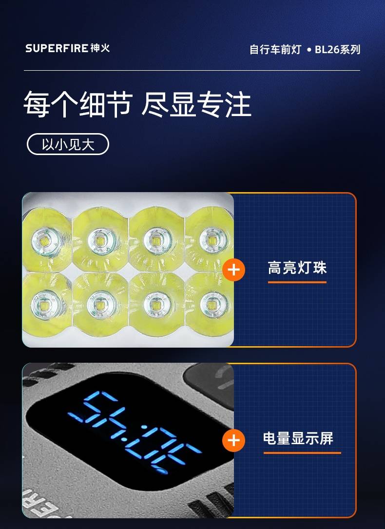 1、千米远射,射程更远,光斑更聚焦。 2、进口灯珠,亮度高,照明效果更好。 3、前后双按键,光源一键点亮,高亮瞬间开启。