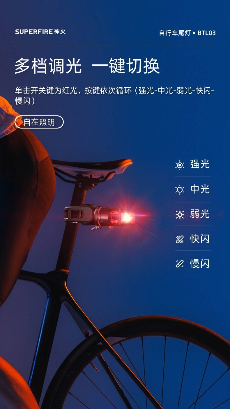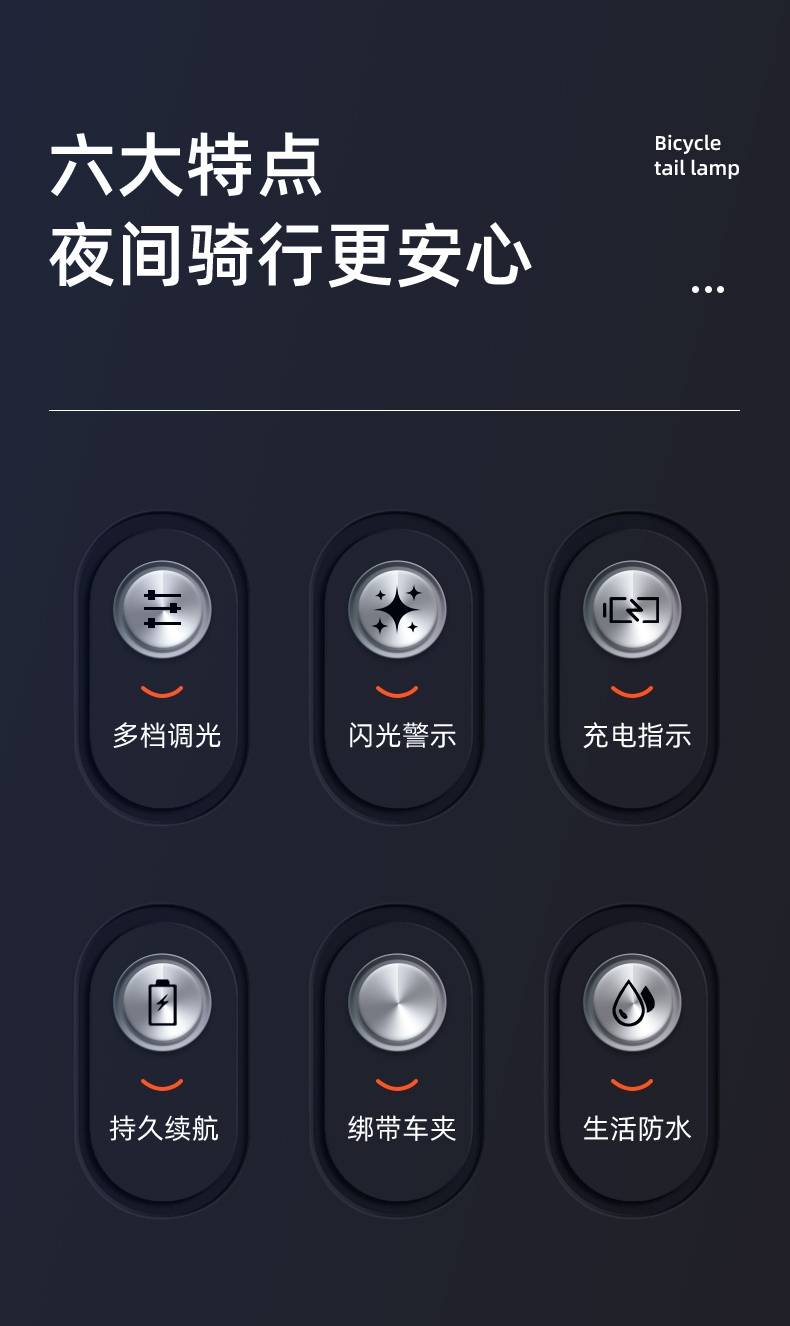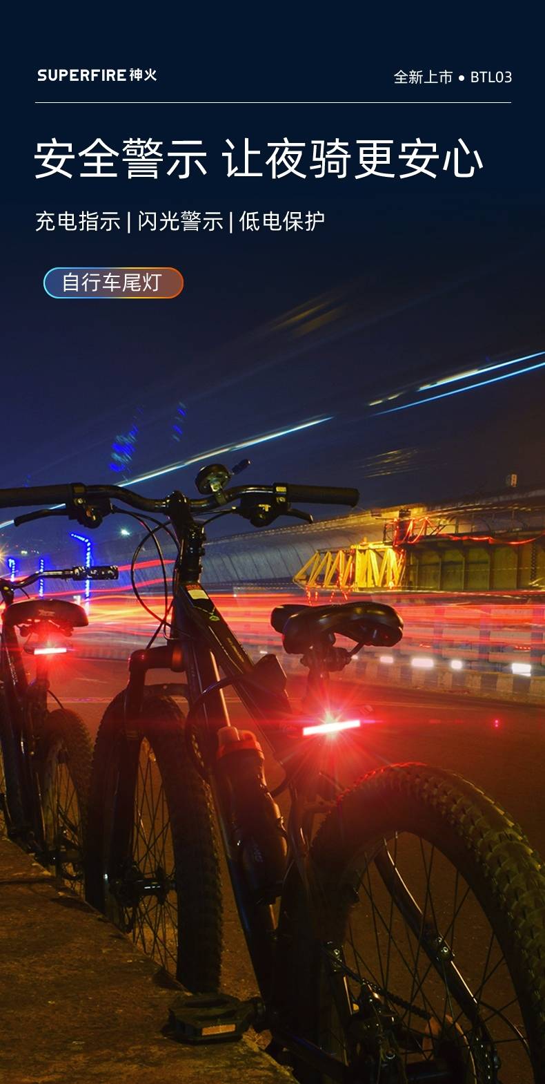 安全警示 让夜骑更安心 充电指示|闪光警示|低电保护 六大特点夜间骑行更安心