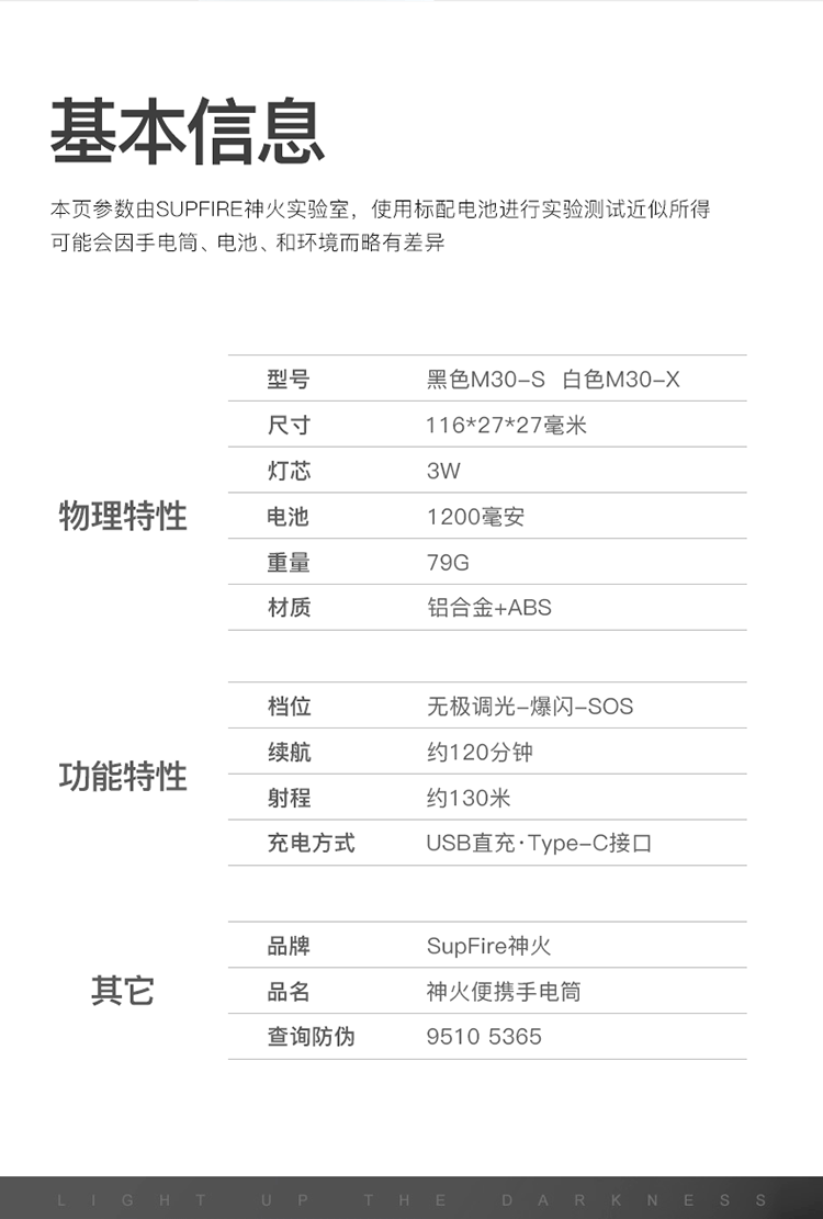四档调光 Type-C充电 电量显示 铝合金筒身 持久续航 强力防水