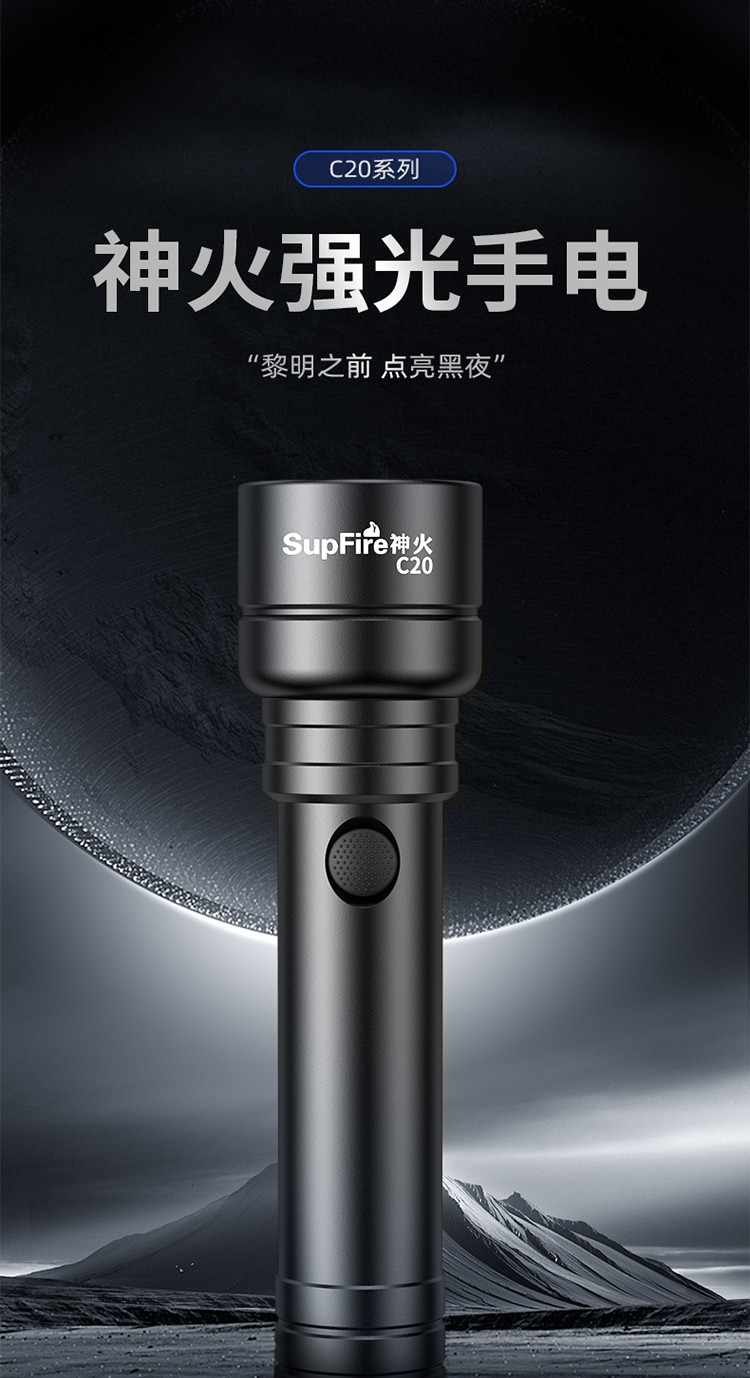 此款采用神火专用灯芯,功率高价格便宜,隐藏式充电孔防水效果更好,超厚外壳完美氧化,配大容量锂电池续航更持久,双击开关打开极亮档,再次双击打开超级亮档,长按开关可关闭。
