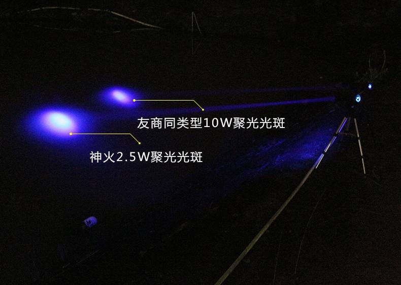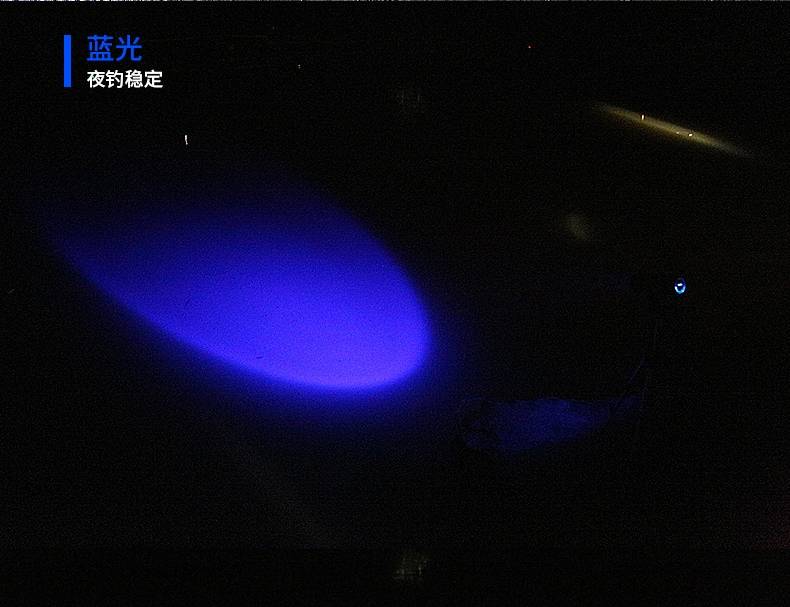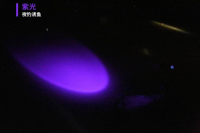 专业钓鱼灯,可调焦(4种光源:白光、黄光、蓝光、紫光),尾部带饵料灯,带电量显示,可搭配三角架使用,性价比超高。