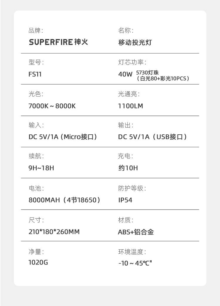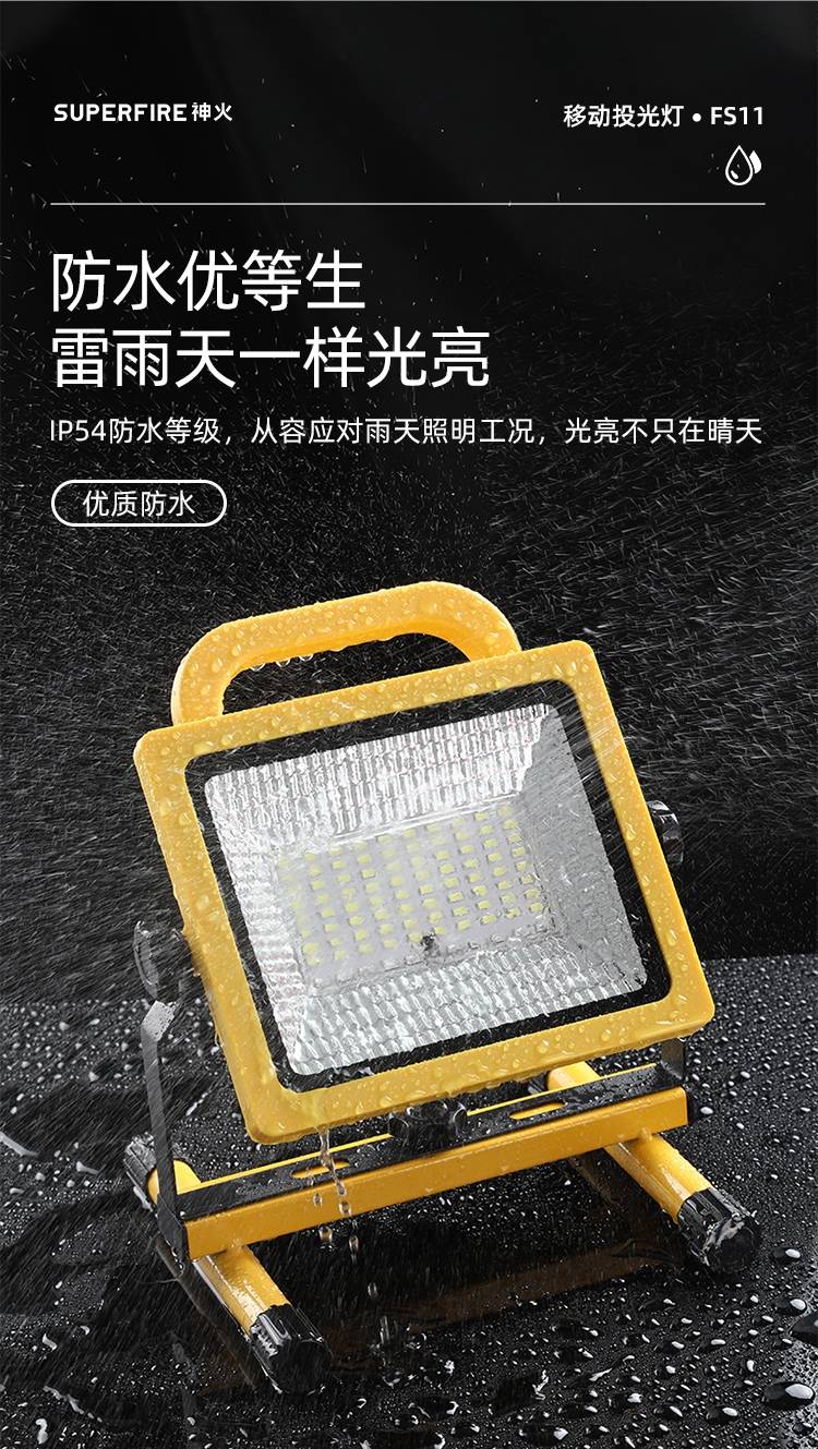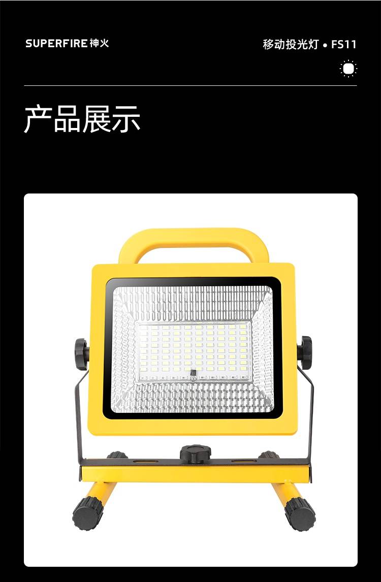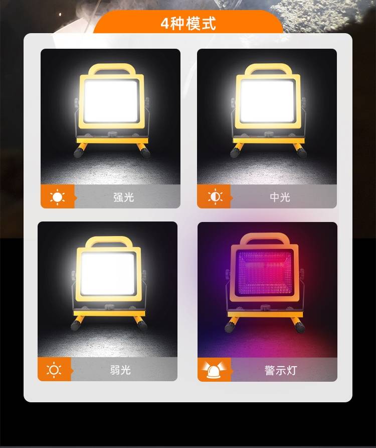 1、多档调光,可满足不同使用场景下的照明需求; 2、含提手,握感更舒适。携带更简单; 3、新型高亮远射灯珠,60W大功率,亮度高,照明效果好。