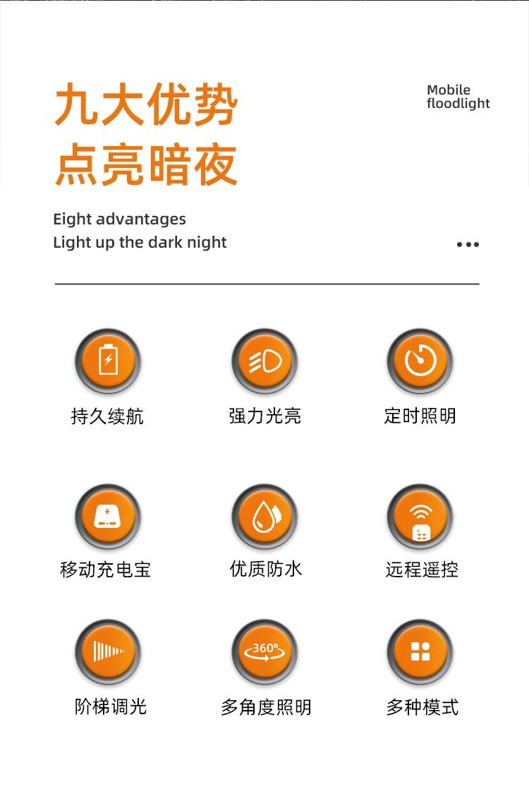 4模式调光 18小时续航 强光|中光|弱光|警示灯 远程遥控|阶梯调光|定时照明