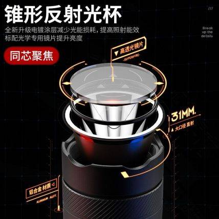 伸缩变焦强续航手电筒